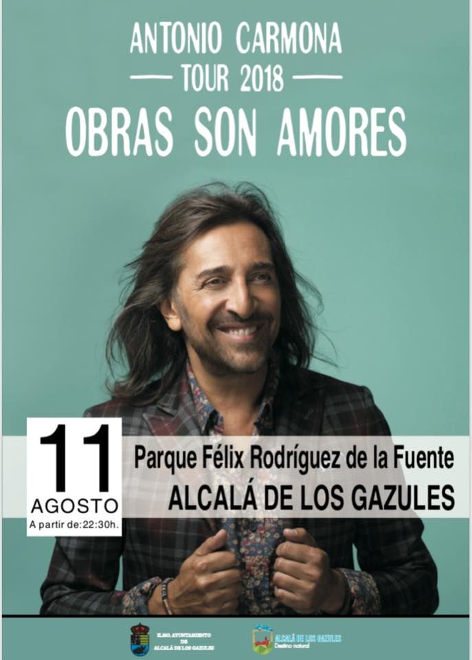 Antonio Carmona nos visitará el próximo 11 de agosto a las 22:30 en el Parque Municipal con un concierto completamente gratuito presentando su TOUR 2018 OBRAS SON AMORES