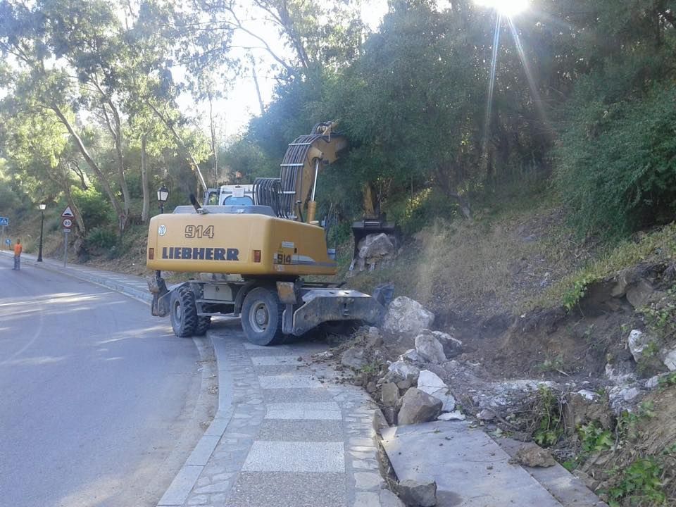 Hoy ha comenzado la obra de ejecucion del muro de escollera en la carretera A-2236 pk 2+600 en el termino municipal de Alcala de los Gazules.