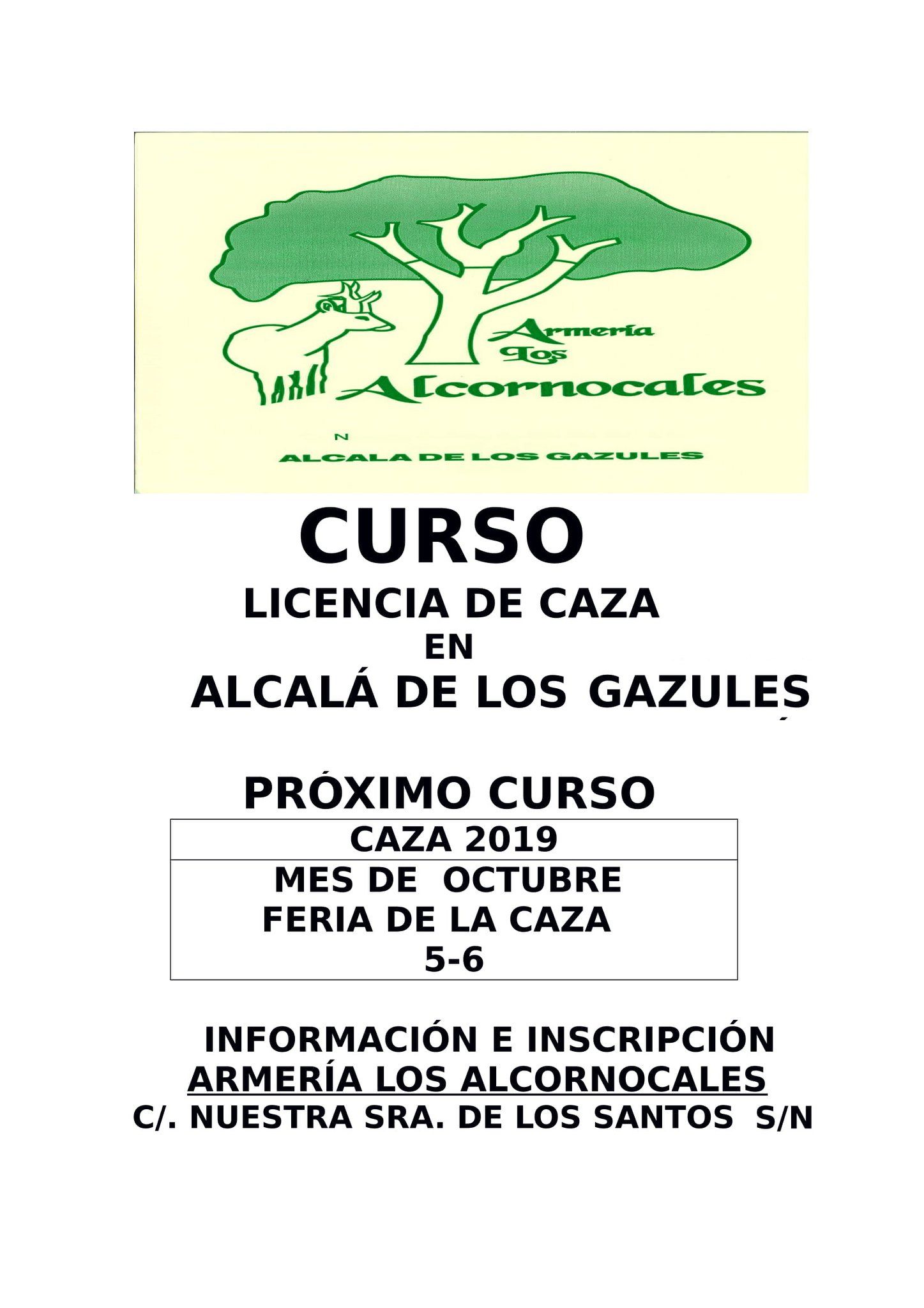 Los próximos días 4 y 5 de Octubre con motivo de la III FERIA DE LA CAZA se va a celebrar el curso para obtener licencia de Caza.