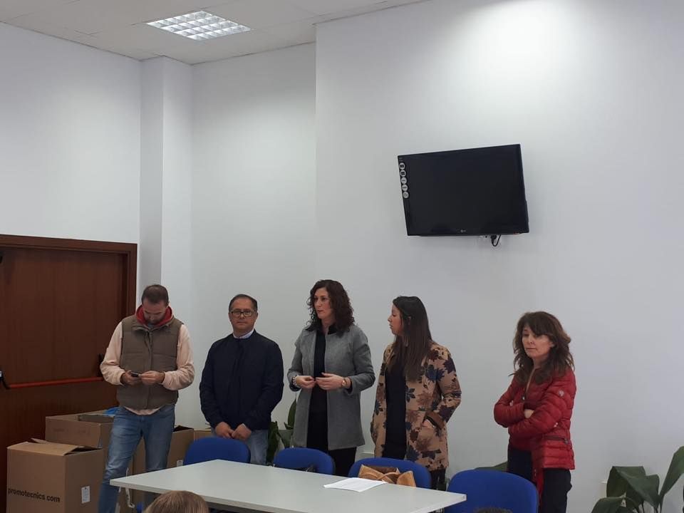La diputada de Igualdad, Juventud y Educación, Isabel María Moya Bermudez, nos ha acompañado, hoy ,en la entrega de lotes de material escolar para familias vulnerables con menores de nuestra localidad, dentro del programa ‘Yo seré lo que quiera ser’ que es financiada por la Obra Social de La Caixa.